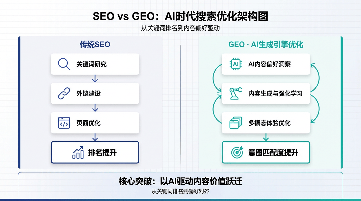 市场地位并非自封,营销结果无法归因和持续优化。GEO更沉视对用户企图的深层理解、AI偏好内容的生成以及多模态内容的整合。